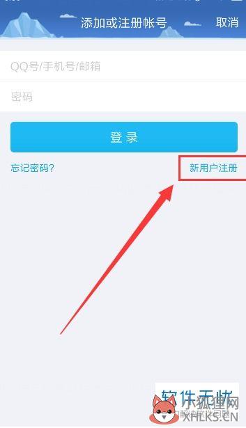 3,手机注册,打开QQ进入登录页面,点击新用户注册。